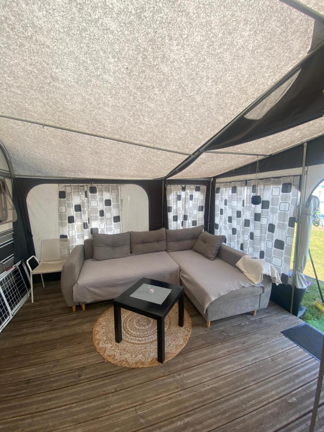 Przyczepa kempingowa. Offering a seating area, a dining area and a wardrobe, this mobile home includes a shared bathroom. Meals can be prepared in the well-fitted kitchen, which comes with a stovetop, a refrigerator, kitchenware and a tea and coffee maker. The mobile home offers heating. The unit offers 2 beds. Domek holenderski - 4 osobowy. Powierzchnia pokoju ok.: 20 mkw.