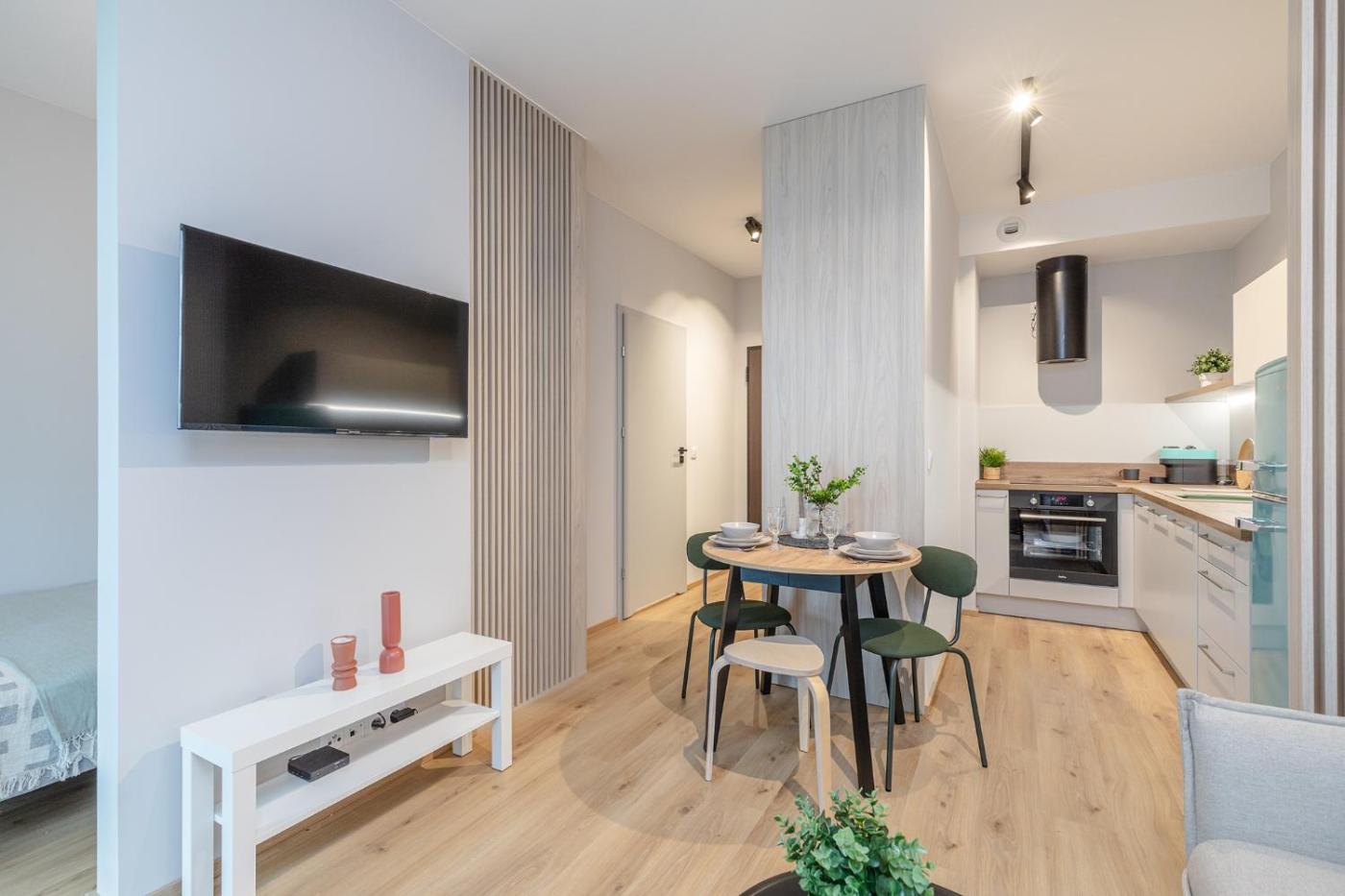 Apartament z 1 sypialnią. This apartment features 1 living room, 1 separate bedroom and 1 bathroom with a shower. In the kitchen, guests will find a stovetop, a refrigerator, a dishwasher and kitchenware. Boasting a terrace with garden views, this apartment also features a washing machine and a flat-screen TV. The unit has 2 beds. Apartament - 5 osobowy. Powierzchnia pokoju ok.: 30 mkw.
